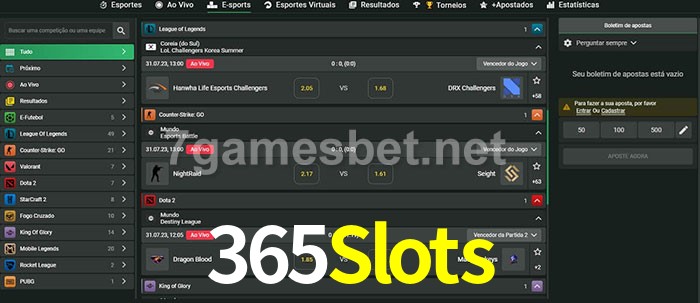 O 365Slots oferece uma grande seleção de opções de apostas em e-sports com probabilidades competitivas